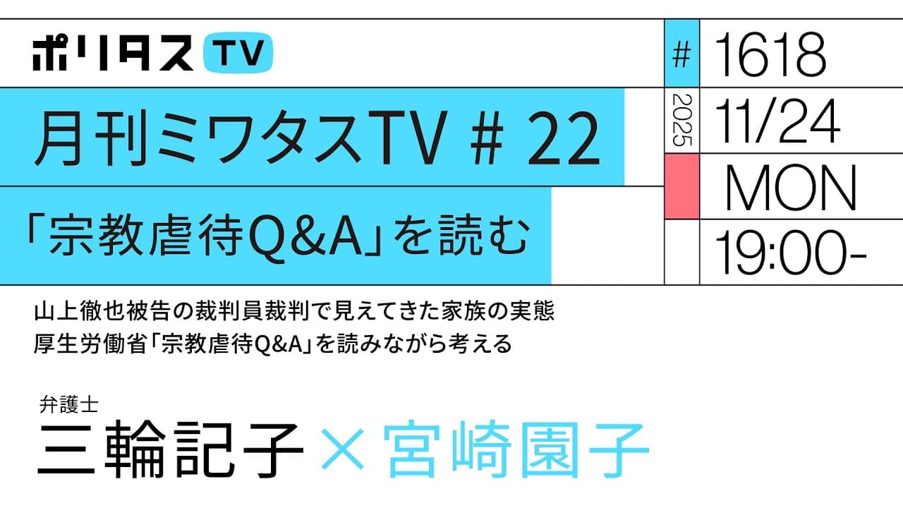 YouTubeで開く第2部はこちらから 【会員限定】報道ヨミトキWEEKLY #224 ゴールデン(11/20)#ポリタスTV 👉 https://youtube.com/live/j6Q9JbB_mCo?feature=share ご視聴したい方はぜひメンバーシップ登録をお願いします (下記リンクから会員登録できます) 👉 https://youtube.com/PolitasTV/join 【ポリタスTV 11/20】 1️⃣報道ヨミトキWEEKLY #224 日中関係泥沼化SP 2️⃣高市首相の国会発言で日中関係が泥沼化、非核三原則見直しへ、どうなる米問題、山上徹也被告の母と妹が裁判で証言…… ジャーナリストの浜田敬子さん @hamakoto と1週間のニュースを振り返ります。 #ポリタスTV 【出演】 浜田敬子(ジャーナリスト) 津田大介(MC / ジャーナリスト / メディア・アクティビスト) ■『集団浅慮 「優秀だった男たち」はなぜ道を誤るのか?』古賀史健(ダイヤモンド社) https://www.amazon.co.jp/dp/4478123683 https://www.diamond.co.jp/book/9784478123683.html =============================================== ポリタスTVの番組は一週間後の19時まで見逃し配信、それ以降は下記の有料アーカイブサービスにてご視聴ください。1000本以上の過去配信番組(一部ライブ配信番組を除く)がご覧いただけます! 【メンバーシップ加入はコチラから】 👉 https://youtube.com/PolitasTV/join 【ポリタスTV】毎日(日本時間)午後7時より配信中! 多士済々のMC陣が、その時々の時事問題や社会問題、メディア、テクノロジー、文化や芸術などのテーマを解説・深掘りします。