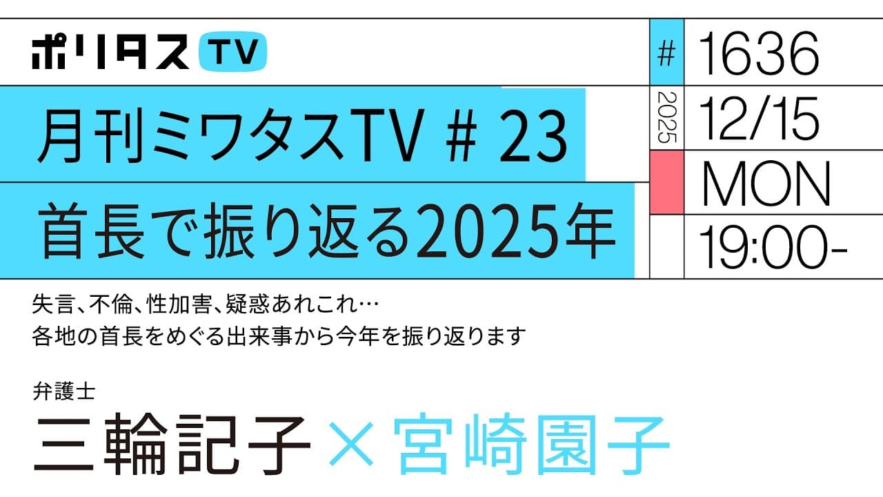 ■【署名】Change.org NHK「性暴力を考える」サイトを消さないで https://www.change.org/p/nhk-%E6%80%A7%E6%9A%B4%E5%8A%9B%E3%82%92%E8%80%83%E3%81%88%E3%82%8B-%E3%82%B5%E3%82%A4%E3%83%88%E3%82%92%E6%B6%88%E3%81%95%E3%81%AA%E3%81%84%E3%81%A7 【ポリタスTV 12/16】 1️⃣「民業圧迫」を唱えたのは誰か 2️⃣「性暴力を考える」サイトはなぜ必要か 3️⃣総務省検討会の議事録を読む 4️⃣本当の「インフォメーションヘルス」とは 署名立ち上げメンバーでMCの池田鮎美が語ります。 #性暴力を考える #みんなでプラス 【出演】 池田鮎美(元ライター) ■アーカイブ:NHK「性暴力を考える」「 #BeyondGender」「みんなでプラス」のサイト情報が保存されました! https://forms.gle/YvGso9jUVfxABYN38 ■放送文化基金賞(2025年) https://www.hbf.or.jp/awards/gallery/6942 ■総務省「デジタル時代における放送制度の在り方に関する検討会」 https://www.soumu.go.jp/main_sosiki/kenkyu/digital_hososeido/index.html ■総務省に提出した要望書はこちらで読めます:Change.org ≪お知らせ≫総務省に要望書を提出しました https://www.change.org/p/nhk-%E6%80%A7%E6%9A%B4%E5%8A%9B%E3%82%92%E8%80%83%E3%81%88%E3%82%8B-%E3%82%B5%E3%82%A4%E3%83%88%E3%82%92%E6%B6%88%E3%81%95%E3%81%AA%E3%81%84%E3%81%A7/u/34109811?recently_edited=true ■内閣府男女共同参画局「男女間における暴力に関する調査 報告書 <概要版> 」(2024年3月) https://www.gender.go.jp/policy/no_violence/e-vaw/chousa/pdf/r05danjokan-gaiyo.pdf ■法務省 「性犯罪に関する刑事法検討会」 取りまとめ報告書(2021年5月) https://www.moj.go.jp/content/001348762.pdf ■性暴力と報道対話の会「性暴力被害取材のためのガイドブック」(2016年) https://siab.jp/heart/wp-content/uploads/2016/12/2016_12_01_b.pdf ■NHKネット配信「必須業務」、放送と同一扱い 改正法成立(日本経済新聞、2024/5/17) https://www.nikkei.com/article/DGXZQOUA162JA0W4A510C2000000/?msockid=295e284662066f732216380663ec6ebd ■衰える新聞・民放が「NHK ONE」に八つ当たり?説得力なき「民業圧迫」批判、国民が求めるのはメディア環境の向上だ(JPpress、2025/10/3) https://jbpress.ismedia.jp/articles/-/90939 ■NHKの優良ネットコンテンツが9月で公開終了…受信料を払っていても「閲覧の方法はありません」 一体なぜ?(東京新聞、2025/10/12) https://www.tokyo-np.co.jp/article/442041 ■NHK特設サイト消滅に波紋「未来に残して」署名1.7万人、広報「復活の計画なし」(弁護士ドットコム、2025/11/16) https://www.bengo4.com/c_18/n_19620/ ■チームみらい安野貴博議員“AIの学習にNHKアーカイブの活用を”→元NHK党議員「素晴らしい提案」(ABEMA TIMES、2025/11/25) https://times.abema.tv/articles/-/10210893?page=1 ■ネットの「NHK政治マガジン」など復活させず 稲葉延雄会長「今後は正しい情報を提供」(産経新聞、2025/11/28) https://news.yahoo.co.jp/articles/e16ac371c91f371655a5b610d93e9e167fb9132e ■NHK稲葉会長への公開質問状「過去のネット配信では正しい情報を出していなかった」のならば即座に国民に謝罪し、不正確な内容を示して修正すべきではないのか…現場から怒りの声が(SlowNews、2025/12/1) https://slownews.com/n/n6427b89f8d50?fbclid=IwZnRzaAOaM_BleHRuA2FlbQIxMQBzcnRjBmFwcF9pZAo2NjI4NTY4Mzc5AAEeXGmTD78E11cVb6mickxuB5iZ5hzjn2U9DCaB_i7hQp5Y5O6lcEL62xEuGrw_aem_Mj6jY-JtkoxuwUWPQkYgQw ==================== ポリタスTVの番組は一週間後の19時まで見逃し配信、それ以降は下記の有料アーカイブサービスにてご視聴ください。1500本以上の過去配信番組(一部ライブ配信番組を除く)がご覧いただけます! 【ポリタスTVのメンバーシップ加入はコチラから】 👉 https://youtube.com/PolitasTV/join 【ポリタスTV】(日本時間)午後7時より配信中! 多士済々のMC陣が、その時々の時事問題や社会問題、メディア、テクノロジー、文化や芸術などのテーマを解説・深掘りします。
