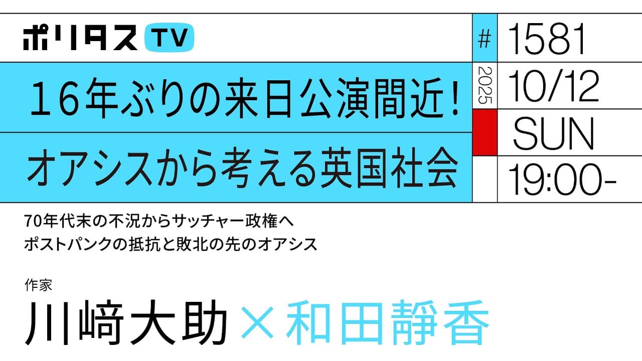 16年ぶりの来日公演間近!オアシスから考える英国社会|70年代末の不況からサッチャー政権へポストパンクの抵抗と敗北の先のオアシス|ゲスト:川﨑大助(10/12)#ポリタスTV